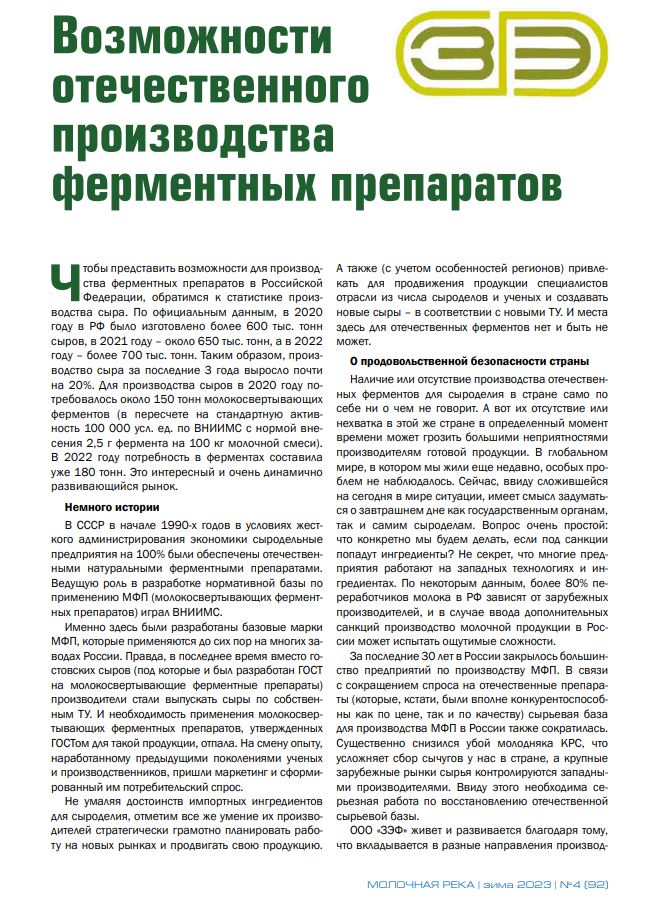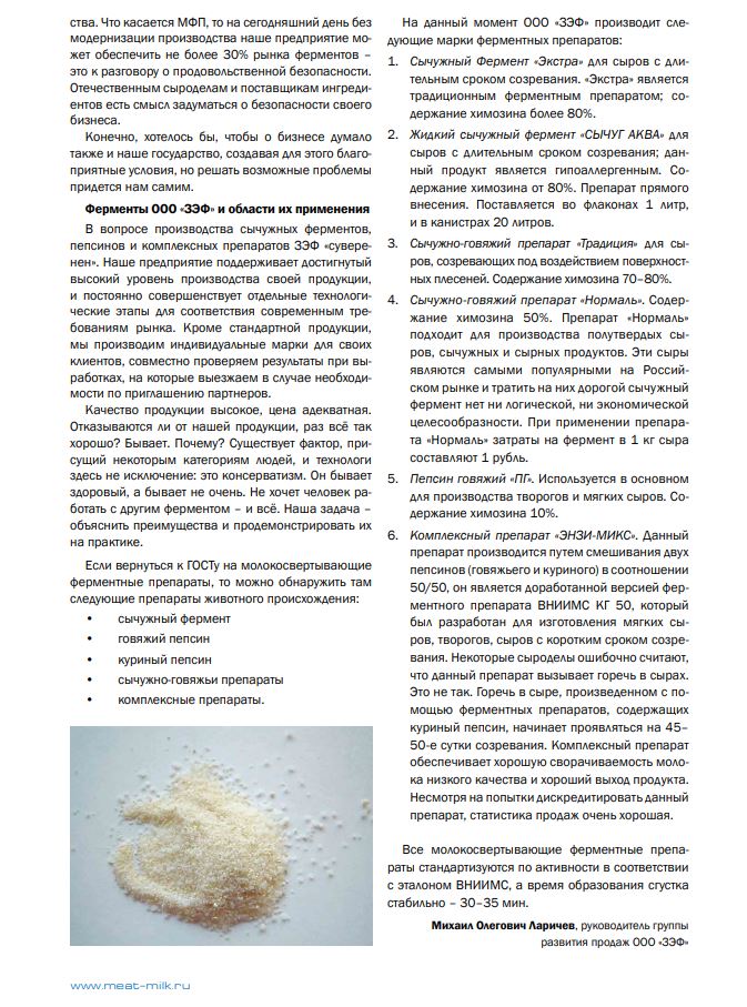 В вопросе производства сычужных ферментов, пепсинов и комплексных препаратов ЗЭФ «суверенен». Наше предприятие поддерживает достигнутый